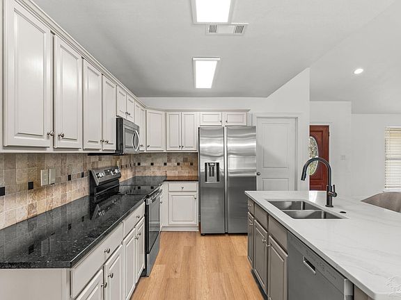 This 3-bedroom, 2-bathroom single-family home with a 2-car garage in the Twelve Oaks Subdivision of Milton/Pace has been totally refreshed and offers functional, modern living. The home features a large open-concept layout with vaulted ceilings, fresh paint inside and out, and brand new flooring throughout. The spacious living area includes a fireplace, and all bedrooms are generously sized. The primary bathroom includes double sinks. The kitchen is equipped with granite and quartz countertops and stainless steel appliances, including a brand new counter-depth refrigerator and microwave, plus a glass-top stove and dishwasher. All new ceiling fans and light fixtures have been installed throughout the home, along with a new water heater. The property offers privacy with no back neighbors and a large, fenced yard. A covered front porch adds to the home’s curb appeal, and the location is convenient to Benny Russell Park and Berryhill Road.
