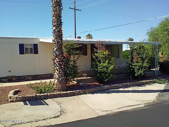 Tucson Estates is a 55+ community that provides an 18 hole executive golf course, 2 large swimming pools, hot tub, spa, tennis courts and a library to name a few of the amenities. This 2br/1ba home faces North and has great views of the Tucson mountains. There is a large addition that can be used as a bedroom or den. The home is next to a large arroya. New washing machine!!! New Mini-Split!!! Golf cart is included.