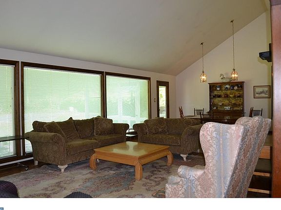 Spectacular ranch home with in ground pool, set on a beautiful 2+ acre lot. The great room and dining area offer vaulted ceilings and overlook the rear yard and pool. A door from the dining area leads to a screened sunroom and a patio. The large kitchen features neutral cabinets and ample counter space. An attached mud room leads to an attached 2 car garage and also has the laundry area. The master bedroom also has vaulted ceiling and a wall of windows to the rear yard. There are also two additional bedrooms and a hall bath. Established landscape in a serene setting just a few minutes from Historic Carversville.