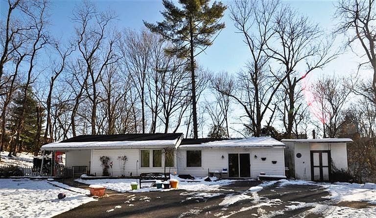 Contemporary ranch has open floor plan on private drive w/over 1 acre wooded lot! Exterior is deceiving! Beautiful updates w/ceramic tile-new lighting-huge master closet-new master bath '09-Pella windows thruout-crown molding-pond-patio + so much more!