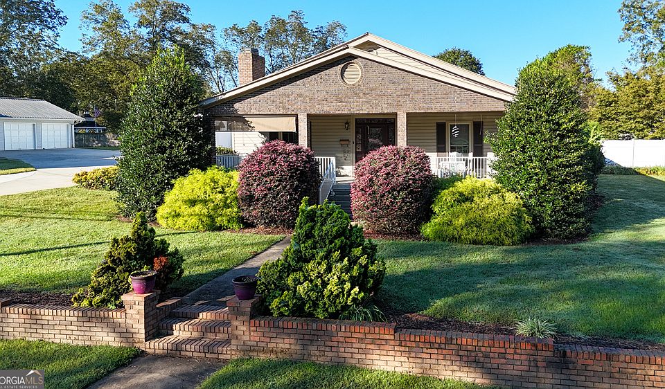 Potential Family compound property in the heart of the quaint City of Lavonia. Walk to the shops and restaurants in this growing small town. Outdoor spaces include a rocking chair front porch, and a quiet back patio overlooking a level yard space, perfect for pool or garden. Cook's kitchen and large dining room make a great family gathering space. There is an attached three car garage and 2 detached three car garages totaling nine! Property is offered with the attached lot behind the home which fronts on East Main St. It could be combined with the home next door 5494 Vickery St to create that family compound.