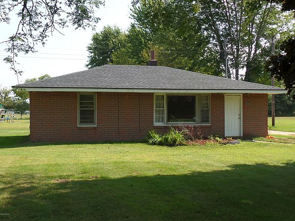 Cute 2 bedroom brick home just outside of town in a rural setting. Municipal water and sewer, gas heat, new flooring and new exterior doors. Stove, refrigerator, washer & dryer included. Seller providing a 1 yr home warranty. Detached garage with new door.
