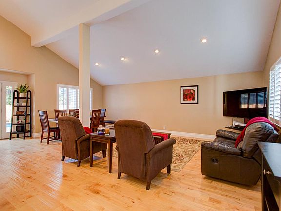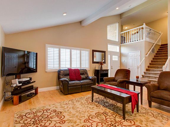Current owners have tastefully and extensively remodeled and updated this gorgeous home.Expansive ground floor great room. Gourmet kitchen with state of the art appliances, granite counters, pantry. hardwood flooring, New doors and carpet. Master bath remodeled in 2017. Vaulted ceiling and sliding glass door that leads out to a patio and sparkling in ground pool, framed by productive citrus trees. Loft bonus room with closet area that could easily be enclosed to create a fourth bedroom. Leased solar for lowered electric bills.