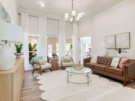 This exceptionally remodeled home blends timeless elegance with modern style. Nestled at the end of a long private drive on nearly 5 acres of high and dry land, the setting offers peaceful seclusion without sacrificing convenience. Inside, you’ll find fresh paint, new water-resistant laminate flooring, and soaring 11' ceilings that create an open, grand feel. The updated kitchen is the heart of the home, featuring quartz countertops with a continuous backsplash, soft-close hardware, a walk-in pantry, large island, newer stainless steel appliances, and a beautiful built-in desk area—perfect for staying organized or working from home. It flows into a spacious great room with a dining area and cozy wood-burning fireplace. The primary suite is a true retreat, with a fully renovated ensuite showcasing an Italian onyx-look tiled shower with a custom niche, a freestanding soaking tub, and elegant finishes. On the opposite side, two spacious guest bedrooms offer custom cedar walk-in closets and share a beautifully updated bath with marble countertops, a marble accent wall, modern sconce lighting, and a built-in shower niche. A stylish half bath is conveniently located off the living room for guests. The layout includes two offices, a den, and a large Florida room—ideal for gatherings and everyday living. Designer touches include 4” crown molding, 6” baseboards, and updated lighting throughout. Additional Features: Fresh landscaping with river rock surrounding the home 80-gallon high-efficiency heat pump water heater (2022) Power lines moved underground PoE wiring for 4 security cameras (2 at the driveway, 2 on the home) Circular drive D.D. Blanchard magnolias line the private drive Covered metal structure for RV or boat storage Outbuilding for extra storage Irrigation well for landscaping Move-in ready, high-style, and full of space—5475 Moonlight Drive is truly one of a kind.