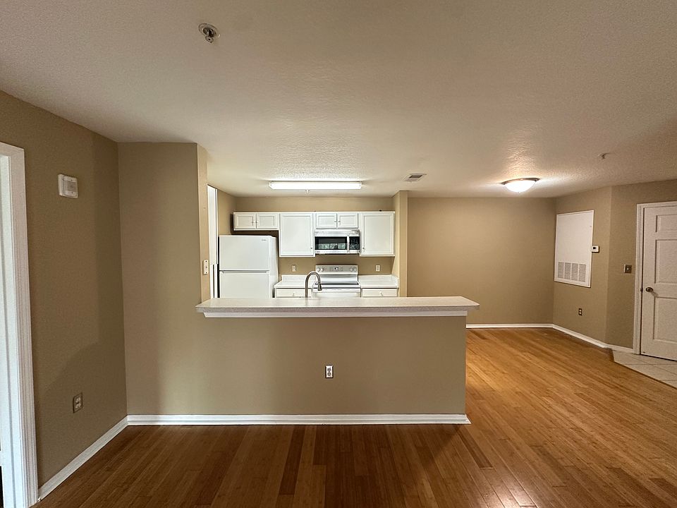 This spacious unit features brand-new carpet in both bedrooms and hardwood flooring throughout the living areas. The open-concept floor plan allows for plenty of natural light and a welcoming atmosphere.