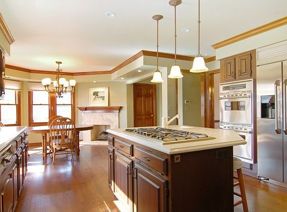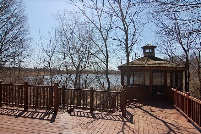 Private and secluded 1 acre lot with mature trees and waterfront 7 acre pond. Only home on private cul-de-sac great for the active family! Adlai Stevenson District 125, ranked number 77 Best High Schools out of 18,000, according to a 2008 U. S. News & World Report America s Best High Schools . Meese-built masterpiece boasts imported fixtures, rich millwork and custom finishes. Hardwood floors in Foyer, Dining Room and Kitchen. Grand two-story entry has solid wood door with sidelights, coffered ceiling, recessed lights and curved solid oak staircase. Living Room has plush carpet, crown molding, chair rail and custom window treatments. Hardwood floor in Dining Room with crown molding and chair rail. Island Kitchen with pendant lights, French limestone fireplace and glazed cherry cabinets. Top-of-the-line gourmet appliances with new Viking double oven and G.E. Monogram stainless steel refrigerator. Large eating area with iron light fixture with antique glass and a door to custom deck. Family Room with beamed cathedral ceiling, brick fireplace and built-in entertainment center with wet bar. French doors lead to deck with lake views. First floor study with built-in bookcases. Onyx Powder Room with pedestal sink, cloisonné faucet and silk moiré wall covering. Double door entry to Master Suite with sitting area and French limestone fireplace with gas logs. Luxury Master Bath has steam shower with bench, 165-gallon whirlpool tub and walk-in linen closet. Dressing Room with a full wall of mirrored closets. Bedroom Suite has a private bath with ceramic tile floor and tub. Partially finished 2,000 square foot walk-out lower level with fireplace, 10 ceilings, and atrium doors that leads to patio and spring-fed pond. Security system, underground sprinkler system, cedar shake roof, two Trion HVAC systems. 1800 sq. ft. custom multi-tiered deck has screened in 16 gazebo with view of pond.