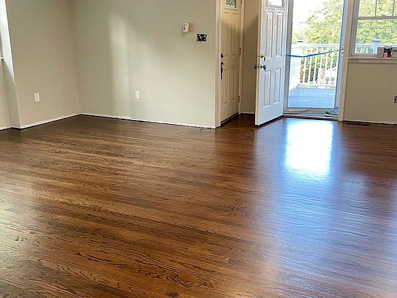 Step inside to an open-concept living space featuring recessed lighting and refinished hardwood floors. The brand-new kitchen boasts white shaker-style cabinets, sleek finishes, and plenty of storage. A private deck extends your living space outdoors, perfect for relaxing or entertaining.