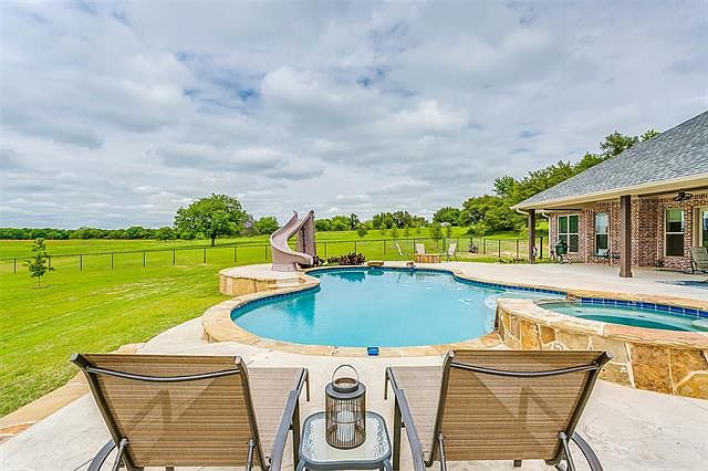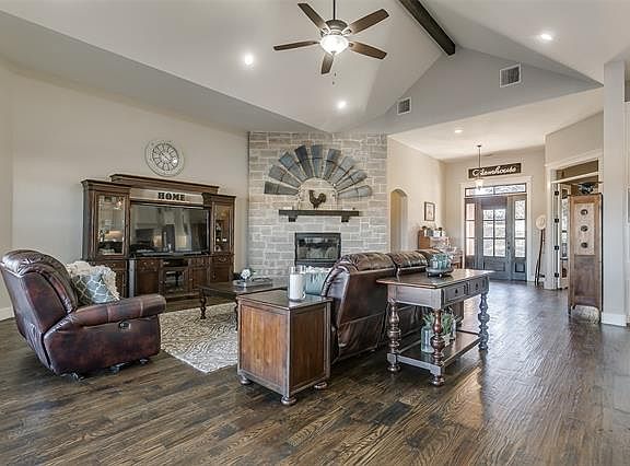 Exquisite custom home on 12 gorgeous acres in Weatherford, TX. As soon as you walk through the front door, the opulence of this home is evident. With today's modern Farmhouse feel, the open floor plan is highlighted by an expansive kitchen w custom cabinets & massive island w remarkable granite. The living room has vaulted ceilings, walls of windows, & handsome fireplace! Large master suite w luxurious spa like bath. Hardwood floors throughout. Impeccable attention to detail. Incredible sunset views to be enjoyed while lounging in the lavish pool that overlooks the lush meadow below! Outstanding workshop! Amazing stocked tank! Bring the animals! Your piece of Texas is waiting!