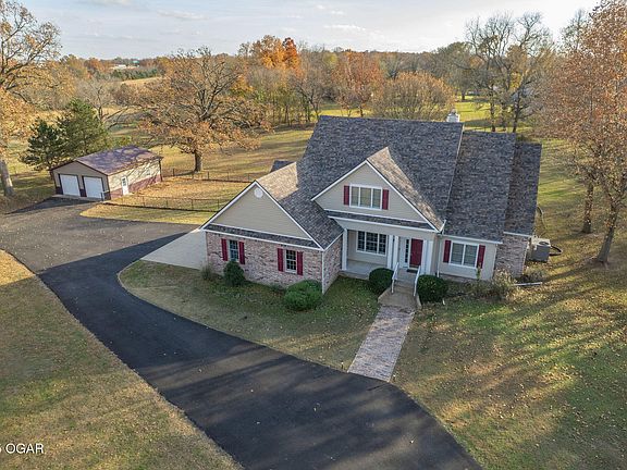 Nestled on a secluded street just east of Joplin city limits, this beautiful 4-bedroom, 3.5-bath home sits on 2.7 acres of gorgeous, tree-filled landscape—offering the perfect blend of privacy, comfort, and convenience. The serene setting welcomes you with mature trees and a peaceful atmosphere, making it feel like a retreat while still being close to town.