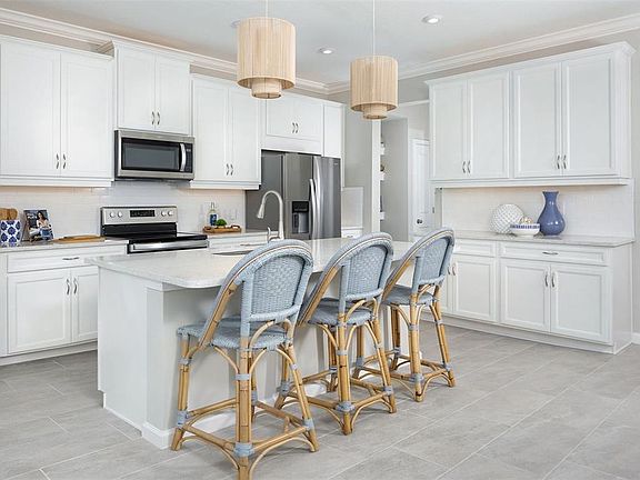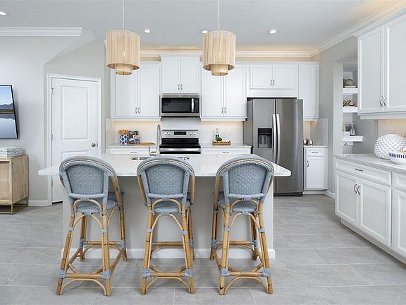 Welcome to The Marianna, a beautifully crafted townhome built in 2024, offering 1,680 square feet of modern, low-maintenance living. Featuring 3 bedrooms, 2.5 bathrooms, and a 1-car garage, this home seamlessly blends style, comfort, and convenience. From the moment you arrive, you'll appreciate the lush landscaping, paver driveway, and the home's desirable location within distance to the community's exceptional amenities. Step inside to an open-concept layout where the gourmet kitchen shines with stainless steel appliances, quartz countertops, a large island, breakfast bar, and a walk-in pantry, delivering ample storage and functionality. The kitchen flows effortlessly into the spacious living area, creating the perfect setting for both everyday life and entertaining. Expansive multi-slide glass doors lead to a covered lanai, offering an ideal spot to unwind and enjoy Florida's signature indoor-outdoor lifestyle without the hassle of exterior upkeep. A first-floor powder room adds thoughtful convenience for guests. Upstairs, a versatile loft provides space for a home office, media room, or relaxation zone. The loft smartly separates the owner's suite from two secondary bedrooms and a full bath, ensuring privacy and flexibility. Retreat to the serene owner's suite, complete with a spacious walk-in closet and a spa-inspired bath featuring a dual-sink raised vanity and walk-in shower. This stunning townhome pairs modern design with the ease of maintenance-free living, so you can spend less time on chores and more time enjoying the lifestyle you deserve.