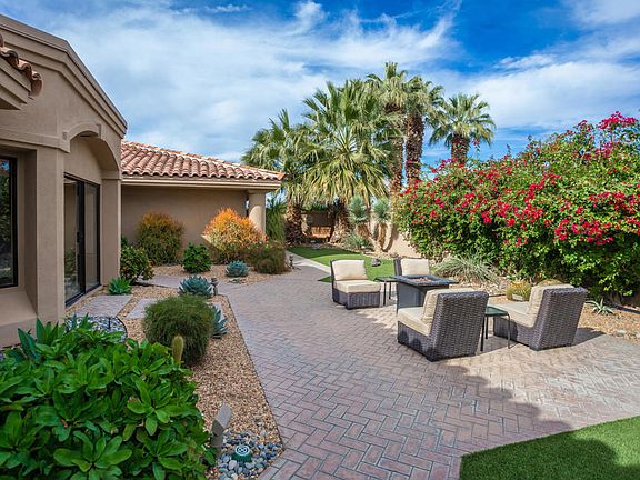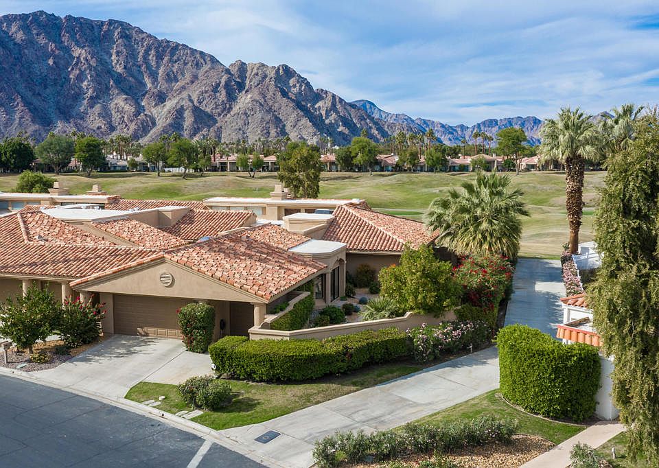 FABULOUS LOCATION! Come live on the 16 th tee of the iconic PGA West Stadium golf course! Share in the excitement of the American Express Golf Tournament passing by your expansive patio. Take in the views of the stunning Santa Rosa mountains.Enter your home from the large, private, desert landscaped courtyard that is perfect for your pets. Within the home, three generous ensuite bedrooms await with an additional guest powder room. The grand foyer and living room are lit by full size sliding glass doors and high vaulted ceilings. The living room includes a marble fireplace and a granite wet bar to serve guests, family, or yourself! Moving into the kitchen, you'll discover granite countertops, stainless steel appliances, beautiful cabinetry, and an entrance to your outdoor dining area. A spacious two car plus Golf Cart garage leads directly into your courtyard. One of the many community pools and spas is just steps away. Three Championship private and three semi-private golf courses grace the grounds, as well as a newly remodeled golf and fitness club. There are excellent dining options, tennis courts,pickleball courts and more. Memberships are available.Whether it is a serene desert retreat, or the excitement of the famous American Express Tournament passing outside your patio, there is something to find for everyone here at PGA West. Come live your best life, the PGA West life! Call for a showing today!