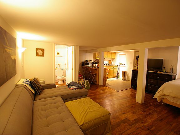 This unfurnished basement studio with updated wood floors and full bathroom with shower. Functional kitchen with 2 electric burners, microwave, mini-refrigerator and breakfast bar/nook. Baseboard electrical heat in unit (radiant heating)