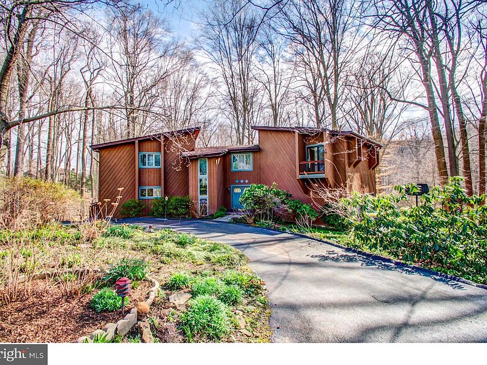 Welcome to this fabulous contemporary home situated in a private woodland retreat, yet only 5 minutes from the center of Hockessin. Enjoy the beautiful woodland views as you enter the circular driveway on this 1.5 acre property. The main level opens to a sunken living room with light from the sliding doors streaming into the angles of the rooms and bamboo wood floors. A cozy wood-burning stove provides an additional heat source. Step up to the dining area with wet bar and into the eat-in kitchen with custom wood cabinets, granite counters, eat-in island and double ovens. Custom cabinetry in the breakfast area provides plentiful storage for glassware and linens. From there you have easy access to the main floor laundry room/pantry, as well as the powder room. All rooms on the main level are surrounded by glass sliding doors to the 75' deck where you can entertain all your friends! The lower level of the home is finished with a large family room, powder room and a wet bar, with recently updated granite and new sink. There is ample unfinished dry space for additional crafting or workshop. Pella sliding doors take you the brick patio with fire pit, where you can roast marshmallows or relax and watch the birds. The oversized two-car garage has significant storage with built in cupboards and an extra high ceiling for bike storage or multi-layer cars. The upper level holds 4 generous bedrooms, each with a private balcony for reading, sunning or simply watching the wildlife. The freshly painted master is large & bright with a side room that can be used as a sitting room, office or closet/dressing room. A walk-in closet and large master bath with Jacuzzi tub complete the room. The hall bath has a recently renovated walk-in shower and upgraded Carrara marble vanity top. Take note of the multi-floor copper art piece, custom built by the original owner, in the center of the stairwell. Brand new Lennox High Efficiency Furnace propane furnace installed 12/20! Other enhancements to note: New septic installed 2017 and re-certified in January! New roof sections completed just two years ago. Deck repainted last year. Granite added to kitchen this month! Much of the home repainted within last 3 years. This home is move-in ready! If you are looking for a spacious home with bright light, yet incredible privacy and easy access to Hockessin and Greenville, put this home on your showing tour today!