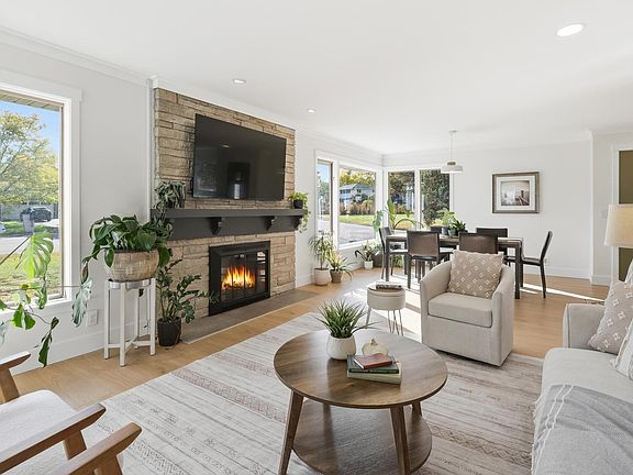Let the sunshine in! This beautifully freshly renovated two-owner mid-century modern rambler in Golden Valley offers a perfect blend of classic charm & modern updates. Featuring a wide open floor plan, the main level includes a sleek kitchen with custom cabinetry, breakfast bar, quartz countertops, stainless appliances, & convenient coffee bar. The spacious living & dining areas, along with a main floor mudroom, create a welcoming & functional space. Three bedrooms on the main level include a private primary suite with new built-in closets and ¾ bath. The fully finished lower level offers an extra-large family room with space for three zones of fun—TV/media, game area, and a kids’ play space—plus a 4th legal bedroom & additional ¾ bath. An extensive laundry/exercise/hobby room, generous storage & new drain tile & sewer line complete the lower level. Enjoy abundant natural light with large south-facing windows, complemented by a charming stone fireplace. No detail has been overlooked, with all new ceramic tile baths, fresh flooring, trim, interior doors, lighting, and smooth / knockdown ceilings throughout. Exterior updates include a newer roof, Hardie siding, gutters, and over half of the windows replaced within the past two years. The expansive yard offers plenty of play space, a brand new deck with privacy fencing, and a separate firepit area—perfect for entertaining or relaxing. Located in a sought-after Golden Valley pocket neighborhood, close to Theodore Wirth Park. Easy access to Highway 55, 100, and 394, this home is just minutes from downtown, the lakes, West End, Ridgedale, and Meadowbrook Golf Course. Situated in the award-winning Hopkins School District, this exceptional home combines comfort, style, and convenience! All work completed by licensed General Contractor. Listing Agent related to Seller.