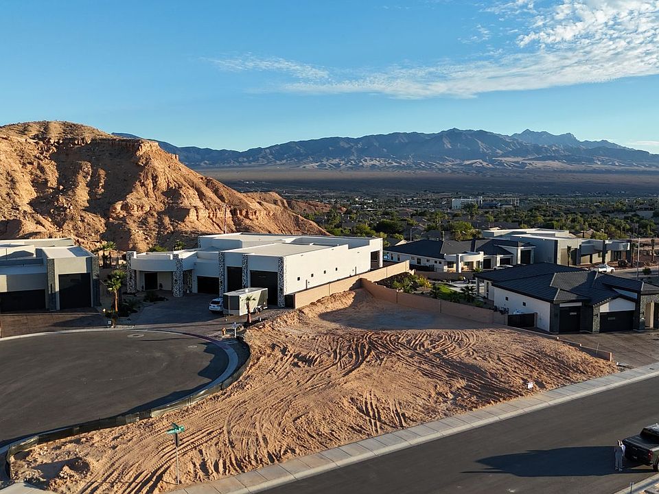 New Horizon Elegance. Cudesac lot with view. TO BE BUILT " This property will feature two primary suites along with a third bedroom and bath, complemented by a three-car garage and mountain views located within a cul-de-sac/corner. The home boasts 10-12 ft ceilings, a flat roof, and a 16 ft double sliding door in the living room. Interior elements include eight-foot doors throughout, an iron front door, GE appliances, undermount sinks, and a spacious walk-in pantry. The open concept living room is fitted with ceiling fans and lighting in all bedrooms and the main living area. Bathrooms offer tiled walk-in showers, while luxury flooring or tile installed throughout, with carpeting in the bedrooms. A large circular covered patio adds to the outdoor space. The front dining room offers flexibility and may serve as an office if desired. Additional features include a large curved driveway, insulated garage walls, and a comprehensive 2-10 year warranty. The house plan is adaptable and may be customized. Pictures are of a model home with the same floor plan.