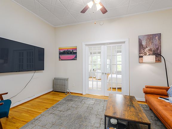 Bright and airy, this top-floor one-bedroom plus den apartment in a classic Brooklyn brick and brownstone building combines charm with modern comfort. Enjoy abundant natural light, cross ventilation, with some city views The space boasts decorative touches like moldings, French doors, fireplace mantels, and tin ceilings, all set against beautifully maintained wood floors .
