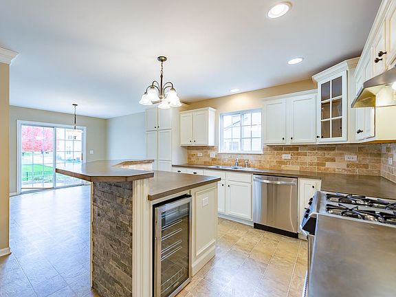 Hard to find GEM in Blackberry Creek. One of the largest models with a highly sought after open floor plan and 3,571ASQ. New roof in 2020! Expansive, bright kitchen, perfect for entertaining ~boasts a huge island w/beverage fridge and breakfast bar~ bright white cabinets~ beautiful Travertine tile backsplash~ stainless steel appliances and large pantry cabinet for storage. Generously sized eating area has a sliding glass door that leads to the paver brick patio with stunning pergola. Living room flows into the formal dining area, with tons of room for a large table. Sizeable family room w/recessed canned lighting, is open to the kitchen. First floor den/office that could be used as bedroom #5 with walk-in closet and half bath nearby. 2nd floor with massive loft area offers many flexible uses (5th/6th bedroom, 2nd office, movie room, playroom etc.) Secluded master suite has private bath with jetted tub, separate shower and giant walk-in closet. 3 additional oversized bedrooms, all with walk-in closets. Full hall bath with linen closet. Newer updates include: new carpet (2021), new roof (2020), new paint (2021), driveway sealed (2021) & newer hot water heater. First floor laundry area with sink. Oversized 2.5 car garage (w/shelving and lifetime springs), Fenced yard, custom shutters and unfinished basement with lots of storage! Fantastic location, incredibly close to large pond, park, walking trail, Metra Train, dining and elementary school! ** BE SURE TO CHECK OUT THE 3D Tour!!