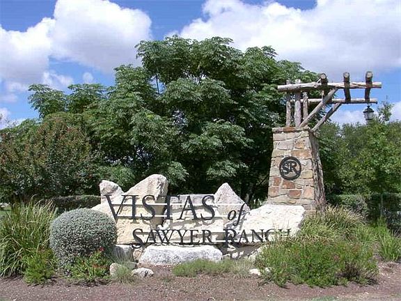 Coveted Vistas of Sawyer Ranch Custom single story home on 1.5 acres on the greenbelt. Open floor plan. High ceilings, hard tile, 2 fireplaces, north-south exposure, hill country views & gorgeous sunsets, 3 car garage, gourmet kitchen, stainless appliances, granite counters. Recirculating hot water. Community center, fenced playground, pool & pavilion, family neighborhood, acclaimed Dripping Springs schools! Kids go to new Sycamore Elementary & Middle schools, walking distance! Only 2% property tax rate!