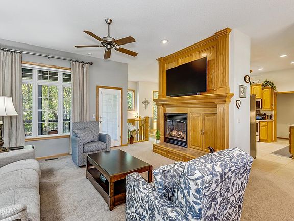 This home really is one to see and shows so immaculately cared for. The sellers are the original owners of this Fahsholtz built home. As you walk in you will notice the treed lot for privacy that you can see right through the many windows adorning the back of the home. The home has 2 walk out accesses to the backyard (one a beautiful screend in deck and the other a mid level walk out between the living room and dining area). The sellers had new roof, new gutters and gutter guards installed only a few years ago (they are looking for exact date/approx 3-5 years ago), new carpet installed, refinished the deck, replaced AC, all stainless appliances including built in ice maker in the kitchen, and more you will see as you enter. The home has 3 bedrooms on main level with primary bedroom split from the others for privacy, a large kitchen with lots of cabinets including more cabinets in the mud area, walk in main level laundry room complete with folding shelf and lots of storage, 2 more bedrooms in the viewout basement that are a very good size, additional 3rd bath in basement, 2 storage rooms, and even a large rec room with surround sound speakers (equipment is staying with home). The sellers did all the extras in the home like 2 hot water heaters, gutter guards, newer roof, water softener, and more. Come see this one today in Andover Central district before it is gone. NO SPECIAL TAXES LEFT ON HOME