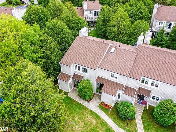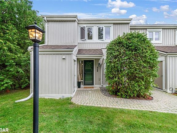 Bright End-Unit Townhome in a Sought-After Location! This spacious end-unit townhome is filled with natural light from three sides and offers one of the best lifestyle values in the area. The open-concept main floor is designed for both relaxing evenings and lively gatherings, featuring a cozy wood fireplace and walkout to an oversized private patio perfect for morning coffee or unwinding under the stars. Upstairs, the primary suite feels like a private retreat with its own balcony, walk-in closet, and well appointed 4 piece ensuite . Two additional bedrooms add flexibility for family, guests, or a dedicated home office. Upstairs, the primary suite feels like a private retreat with its own balcony, walk-in closet, and well appointed 4 piece ensuite . Two additional bedrooms add flexibility for family, guests, or a dedicated home office. Recent updates elevate the homes appeal: new windows and sliding doors installed by the condo management (2021), popcorn ceilings professionally removed and refinished on the main level (2024), fresh paint throughout including trim and ceilings (2024), and modernized light fixtures, bath vanity lights, thermostats, switches, and outlets (2024). Practical touches like smart storage solution seven under the stairs and a dedicated locker for skis and bikes make this home as functional as it is stylish. With the Georgian Trail just steps away and easy access to downtown Collingwood, Blue Mountain Village, and Wasaga Beach, this is an ideal spot for outdoor enthusiasts and commuters alike.