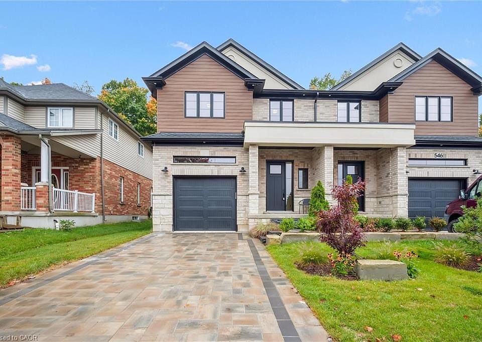 THE ONE that will take you by surprise - discover refined living in this beautifully appointed semi-detached home in Kitchener, showcasing over 2300 sf of elegantly designed living space. With 4 bedrooms and 4 bathrooms, this home blends modern sophistication with comfort, offering a lifestyle of both luxury and ease. The heart of this home is the gourmet kitchen, featuring custom Chervin-built cabinetry, premium fixtures, and a seamless flow into the dining and living areas—perfect for both everyday living and entertaining. Oversized windows frame serene views of private green space, bringing natural light and tranquility indoors. Upstairs, discover a spacious primary retreat with a spa-inspired ensuite featuring a double-vanity & walk-in closet Additional spacious bedrooms provide flexibility for family, guests, or a private home office, while the finished lower level offers even more living space. Step outside to your own sanctuary—an expansive deep lot backing onto lush green space adorned with majestic maple trees. Whether enjoying morning coffee or evening gatherings, this tranquil backdrop provides year-round beauty and privacy. Ideally located near prestigious schools, vibrant shopping including the Sunrise Centre, dining, and recreation, this home seamlessly combines convenience, elegance, and natural charm—a rare offering in one of Kitchener’s most desirable settings. Don’t miss the opportunity to own this one-of-a-kind home — schedule your showing today!