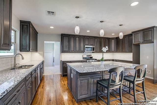 1 story hm on a corner lot in Terrell Hills. Beautifully updated w/ spacious floor plan. "Chefs" kitchen has granite counter tops, professional gas range & island kitchen that opens to generous family room w/ wall of double pain windows. Inside the updated 1950's vintage hm you will find large living spaces w/ lots of light. Master bedroom, bath w/ double vanities & large closet. .33 of an acre lot. Wood flrs in LIV and carpet in Master & 2nd bdrm. Seller is motivated to move on to his next project!