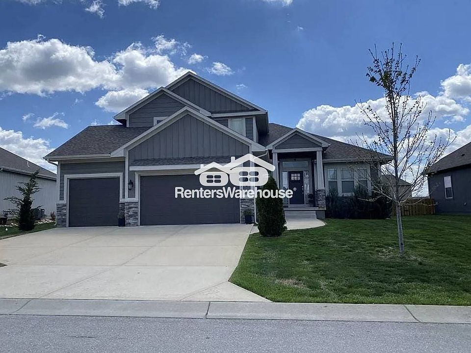 Check out this beautiful 1.5 story home in Blue Springs! Kitchen is complete with quartz countertops, a walk in pantry and a large island. Main level owner's suite features custom tiled walk in shower, double vanity, separate soaker tub and access to the laundry room. Main level flex room could be a home office or guest bedroom. 3 additional bedrooms upstairs and 2 bathrooms. 3 Car attached garage.