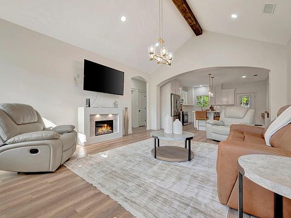 Welcome home to this stunning 2025 newly built 3-bedroom, 2-bath residence that blends modern luxury with everyday comfort—all at an affordable price. Step inside and be greeted by cathedral ceilings that create a bright, airy atmosphere throughout the open living space. The spacious kitchen is a dream, featuring a large quartz island with barside seating, spacious walk-in pantry, stylish finishes, and seamless flow to the dining and living areas—perfect for both entertaining and daily living. The primary suite is a true retreat, boasting a spa-like ensuite with a walk-in shower, a freestanding soaking tub, and a thoughtfully designed walk-in closet with custom built-ins. Enjoy outdoor living year-round on the covered back porch, the ideal spot to relax and unwind. This home delivers the high-end details you love—without the luxury price tag. Don't miss your chance to own this exceptional new build that checks every box for comfort, style, and value! Furniture negotiable. FP stays.