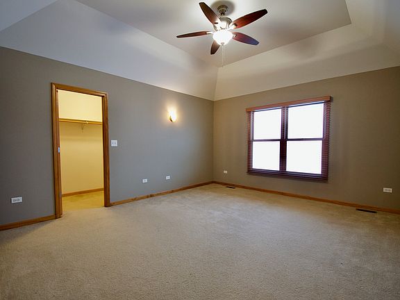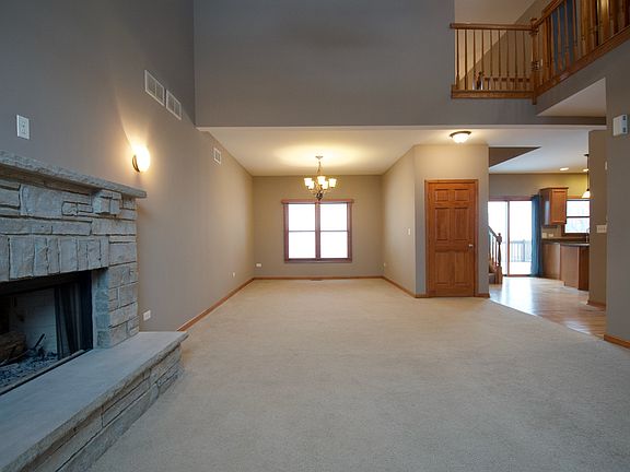 Ready to move in. Deerpath Creek Luxury Villa Duplex. True three bedroom, 2.5 bath unit. Stunning stone fireplace in living room. Freshly painted! Granite kitchen w/ silver maple cabinets & wood floors. Master bedroom w/ tray ceiling, walk-in closet & price master bath with separate jet tub & shower. Full English Style basement and rough-in plumbing for future bath. Yard with deck that overlooks the countryside with open views. Come make this your new home.