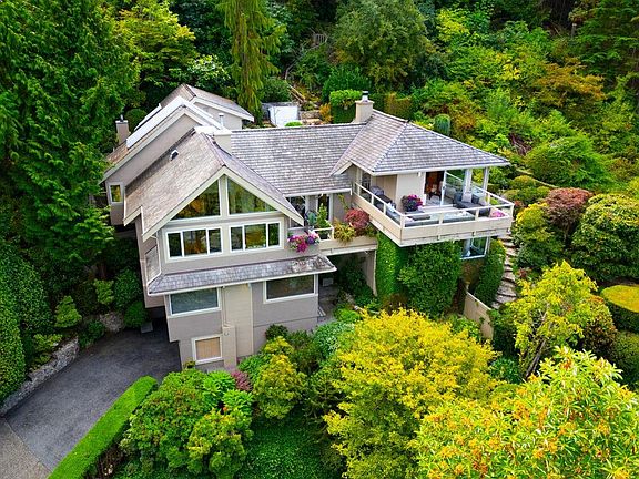 Completely unique! Stunning 3800 sq/ft treasure nestled into a totally private sun drenched lot offering gorgeous ocean views in a setting that is simply magical. Spectacular, landscaping, rock work and tranquil ponds wrapped around this exquisitely crafted and completely renovated custom home with impeccable attention to detail and incredible quality throughout which is a feast for the eyes. Impressive architecture shines, with spacious open rooms, wine cellar, vaulted ceilings, skylights and beautiful natural lighting providing a glorious experience to share with friends and family. Private elevator, incredible indoor/oudoor living with huge covered outdoor patio built in bbq and 1700 sq/ft deck and spa/ tub provide the most magnificent tranquil lifestyle that is rare! Very special!