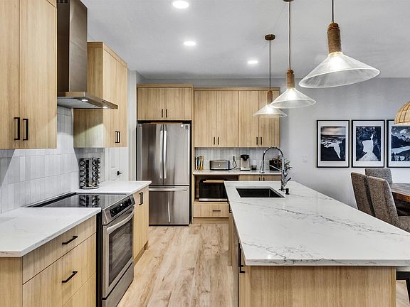 Looking at new builds but don't want to deal with all the extra expenses that come with it? This stunner has EVERYTHING you want at a price that you can afford! Only 2 years old, this home has the layout, modern decor and styling you have been seeking, on a side street across from the lake, on a full sized lot this home offers just shy of 2200 square feet with open concept main floor that is flooded in natural light with a full wall of windows to the fully fenced and landscaped back yard, living room offers a custom feature wall that anchors the room, open to the kitchen with tons of cabinets, coffee bar, QUARTZ countertops, Stainless appliances and a walk thru pantry, dining nook offers patio door access to the attached back deck, completing the main level is a den thru double doors, 1/2 bath and garage access, upper level with big primary, ensuite with double sinks, big glass shower & soaker tub, a bonus room separates 2 additional bedrooms, basement ready for your development! 10/10!