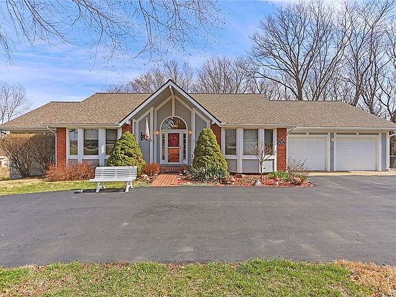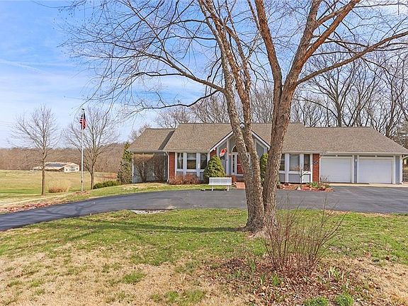 Circle drive greets you at this fabulous true ranch with a finished walk-out lower level. You will be taken away by the spectacular views! Brand new carpet February 26, 2024. 2.40 acres is just the right privacy to be livin' the dream! Privacy but, neighbors make for a great community! Defined vaulted entryway to the first of several "gathering" areas. Warm and open kitchen/dining/family room. Painted cabinetry. Main floor master has two walk-in closets. Laundry on main plus two additional bedrooms and second full bathroom. Lower level has a 4th bedroom, 3rd full bath and 3rd overhead garage door for natual-air in this workshop. Follow the stone path to separate shed and chicken coop. Lower level finish for media and game tables. Inside access to true storm shelter under front porch with steel door and triple lock closure. Covered outdoor storage for boat or RV storage. Dog kennel and separate run. You will not want to miss this one!