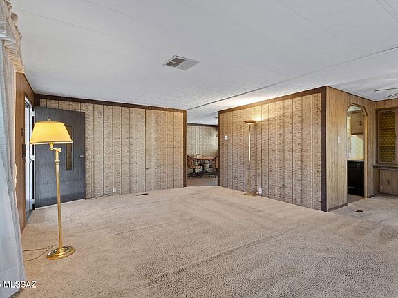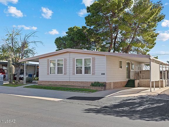 Welcome to this charming double-wide manufactured home nestled in the scenic Tucson Estates community, a 2-bedroom, 2-bath home offering comfort, efficiency, and desert-style living at its best. This well-maintained property features updated double-pane windows that enhance both comfort and energy savings. The open living area flows easily into the kitchen and dining space, creating a warm and inviting atmosphere perfect for everyday living or entertaining. Outside, you'll find a low-maintenance desert landscape accented by mature citrus trees and a fully fenced yard ideal for pets, gardening, or simply enjoying the outdoors in privacy. Relax on the covered patio and take in the peaceful surroundings. Located in the highly sought-after 55+ Tucson Estates community, residents enjoy access to golf, tennis, pickleball, swimming, and a variety of social activities - all surrounded by the stunning Tucson Mountains.