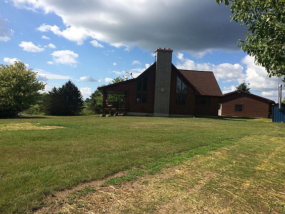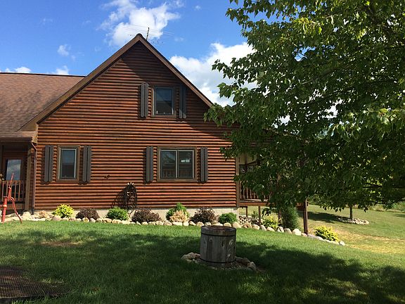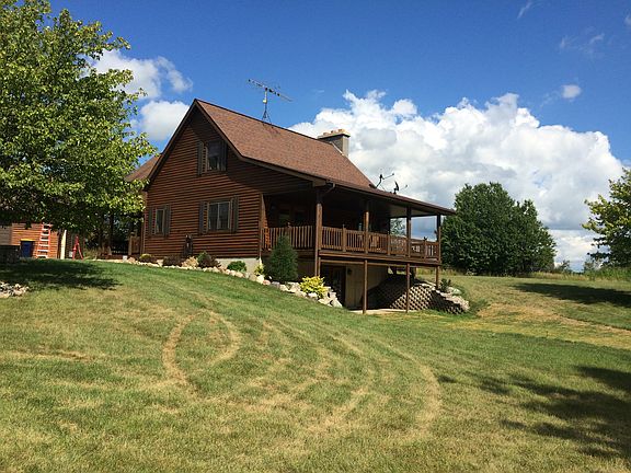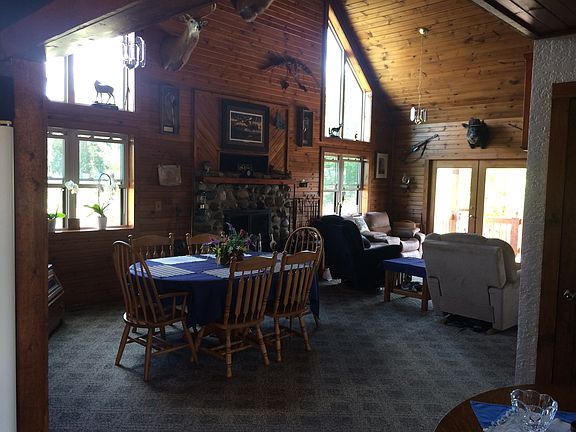 Log cabin style, cathedral ceiling, located 1/2 mile on gravel road. 2 1/2 car detached heated garage. Outside wood burner. NEW windows & high efficiency geo thermal heat. Central air, 4 French doors, fireplace and walk out finished basement. 3 acres with 1/2 acre of woods. Built in 1991 ONE OWNER. Portland school district.