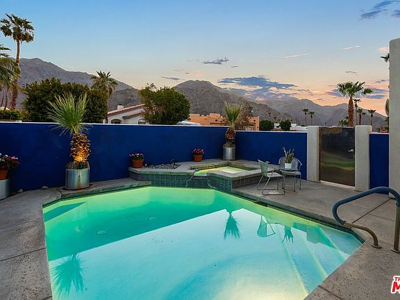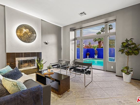 Nestled less than a block from the top of La Quinta Cove, this bright and spacious modern pool home is surrounded by gorgeous mountain views. Through the walled courtyard with a sparkling pool and spill over spa, enter to an open airy living space bathed in natural light and featuring high ceilings, clerestory windows, stone tile floors, and a cozy fireplace. Through to the expansive great room, you'll find a spacious gourmet kitchen with sleek modern cabinetry and countertops, large island, upgraded stainless steel appliances, and a breakfast nook. French doors from both the kitchen and primary suite lead to a covered patio oasis... peaceful and private with tall greenery, water feature, and tranquil pond. Perfect for entertaining and relaxing. Home has rare to find four bedrooms and includes a primary suite that features a walk-in closet, an en suite bathroom with dual sinks and large shower. Great layout. Please review 3D tour and floor plan for more details. No HOA's. Updates throughout, including a new roof in 2019 and brand-new carpeting. Wonderful location... close to hiking/biking trails and minutes from shopping and dining in Old Town, golfing, the polo grounds, music festivals... all that the Desert has to offer!