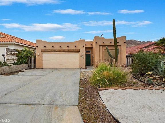 Desert living that won’t break the bank! This single-story Santa Fe-style home is located in the highly desirable La Quinta Cove, just minutes from Old Town La Quinta’s shops and dining, close to scenic walking and biking trails, and surrounded by world-class golf courses including PGA West and the La Quinta Resort & Club. Offering approximately 1,651 square feet of living space on a 4,792 square foot lot, this home features 3 bedrooms, 2 full bathrooms, and a 2-car attached garage with direct access to the interior. The backyard includes a heated in-ground pool—perfect for relaxing or entertaining. Inside, you'll find high ceilings and Spanish tile flooring that flows from the entryway into the kitchen, which opens to the family room and includes shelving and built-in cabinets. The kitchen offers ample counter space and cabinetry, a pantry for additional storage, a kitchen island with a wood butcher block top and second sink, black appliances, a full-size refrigerator (included), a breakfast counter bar, and a separate dining area with built-in glass display shelves and lower cabinetry. Two of the three bedrooms feature walk-in closets, and the laundry area is conveniently located inside, with a stack-able washer and dryer included. The large primary bedroom features built-in dresser nightstands, adding both character and function. The primary bathroom includes dual sinks, a tiled walk-in shower, and a jetted Jacuzzi tub—perfect for unwinding. Whether you're looking for a full-time residence, vacation home, or investment opportunity, this property offers an unbeatable location.
