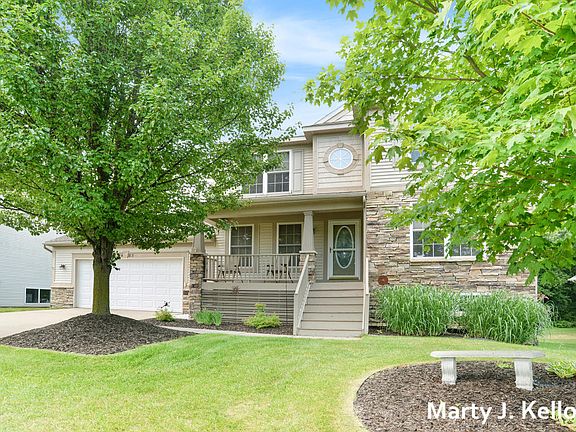 Move-in ready 2 story walkout has many recent updates throughout including new carpet, paint and recently renovated kitchen. Main level has open foyer with ceramic floor, french doors to study/den, formal dining room, open kitchen with eating area, family room with fireplace, main floor laundry and half bath. Upper level features owner's suite with large walk-in closet and master bath with whirlpool tub, 2-additional bedrooms and full bath. Walkout lower level has 9-foot ceilings, is framed, roughed in and ready to be finished with the potential to add an additional 900 finished square footage, including an additional bathroom and 4th bedroom. Large backyard is fenced-in with underground sprinkling system. Enjoy the great view that overlooks the woods and pond from your large deck.