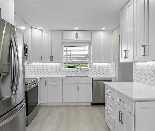 WOW. Take a look at this Beautiful 2 BR 2 Bath first floor condo . Total remodel just completed with top of the line 42" cabinetry, quartz countertops, luxury vinyl plank flooring, new 5" baseboard molding, porcelain master bath shower and flooring, New fans and light fixtures, recess ceiling lights in great room, electric storm shutters, and new stainless steel appliances. New A/C system installed 3 months ago. This bright and light residence has peaceful southern water views. The community has one of the best Naples location. 10 minute ride to the beaches, downtown shopping, and dining. Vacant and easy to show.