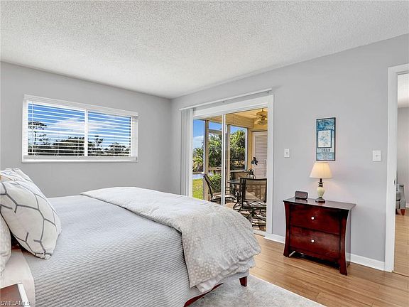 Tucked within the peaceful and highly sought-after Country Club Manor in Naples, Florida, this turnkey, fully upgraded 2-bedroom, 2-bathroom first-floor condo offers both comfort and style, complemented by a serene water view. Every aspect of this residence has been carefully updated to create a warm, welcoming environment perfect for both relaxation and entertaining. Step inside to find beautiful hardwood flooring (2021) that flows throughout the open living spaces. The entire home was freshly painted in 2022, showcasing a custom mural by a local artist in the living room and a modern color palette that highlights the natural light streaming through hurricane-impact windows (2019). A new storm/screen door (2023) adds convenience and curb appeal. The kitchen, remodeled in 2018, features maple cabinetry, granite countertops, and a ceramic tile backsplash, offering a stylish and functional space for the home chef. The tray ceiling with crown molding and mood lighting (2022) elevates the room’s charm, while new recessed lighting brightens every corner. Both bathrooms were tastefully remodeled in 2022, showcasing premium tile, quartz countertops, and modern finishes. The primary bath offers a spa-like retreat with frameless glass doors, a Hansgrohe handheld showerhead, and a sleek vanity, while the guest bath features a rain shower head, Hansgrohe fixtures, and Kohler comfort-height toilets in both bathrooms for added comfort. The lanai, redesigned in 2022, is another highlight—featuring new vinyl doors, cabinetry, and a bar area with a quartz countertop, perfect for enjoying morning coffee or hosting guests while taking in the tranquil water views. Hurricane shutters (2019) add an extra layer of security and peace of mind. Additional improvements include a new A/C unit (2021) with a pre-paid maintenance plan, a new water heater (2021), updated lighting fixtures and outlets (2022), and modern two-panel doors with upgraded hardware throughout. This condo also includes covered parking and an unbeatable location less than 5 miles from Fifth Avenue and Downtown Naples, putting world-class dining, boutique shopping, cultural attractions, and pristine Gulf beaches all within easy reach