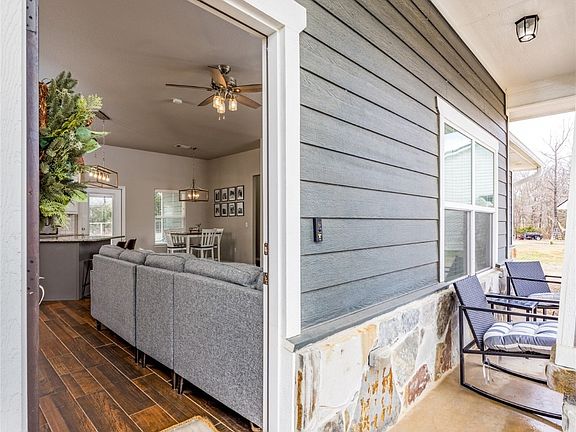 This craftsman-style beauty is move-in ready and located in desirable Country Estates VI subdivision! Step inside to a warm and inviting living space, complete with a cozy fireplace and built-ins that add both charm and functionality; they are especially fun to decorate with seasonal decor! The appealing color palette pairs perfectly with the wood-look tile flooring that runs throughout the main living areas, making the home both stylish and low-maintenance. The kitchen features stainless steel appliances, granite countertops, and a gas (propone) range. The primary suite is a true retreat, featuring an en suite bathroom with double sinks, a separate vanity area, and a tiled walk-in shower. The additional bedrooms are well-sized, and the thoughtful layout makes the home feel spacious and comfortable. Outside, you’ll love the fenced-in backyard, complete with a shed and a storm shelter for convenience and peace of mind. Plus, with city-owned property behind the home, you get to enjoy a wooded view with no backyard neighbors! The trees in the back are full and beautiful in the spring and summer time! This home is the perfect blend of style, comfort, and convenience—don't miss your chance to make it yours!