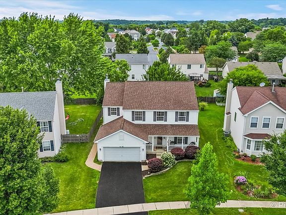 AMAZING DEAL! PRICE REDUCED $50,000 TO SELL QUICKLY! SELLER REQUESTS A QUICK CLOSING! LARGE HOME FOR THE PRICE! Located in a Prime Location - Close to It All! Just minutes from parks, hospital, restaurants, shopping, Tom's Farm Market, downtown Huntley, Rt. 47 & Randall Road - plus highly rated Huntley schools! This largest model features 5 true bedrooms plus a den/office (easily a 6th bedroom) ALL above ground level, 3.5 baths, and a full basement. Recent upgrades include a newer roof (2021), Rheem 2-stage furnace, Carrier central air (both approximately 4 years old), and a new LG front-load washer & dryer. Step onto the inviting front porch, leading to a bright foyer with archways to the formal living and dining rooms. The open-concept kitchen offers tall cabinets with crown molding, granite counters, brand-new undermount sink, island, pantry, and high-end Samsung black stainless appliances (all approximately 2 years new, some never used). Beautiful mahogany wood flooring runs through the kitchen and hallways. Enjoy casual dining in the breakfast area with sliding doors to the oversized brick paver patio and walkways-perfect for entertaining! Adjacent is the spacious family room with a gas fireplace. Upstairs, the primary suite boasts a sitting area, walk-in closet, and spa-like bath with double sinks, soaking tub, and separate shower. Generously sized secondary bedrooms include a Jack & Jill bath plus another full bath. The full basement offers flexible living with a finished rec space/man/woman cave and added insulation for temperature comfort & noise reduction. Outside, the driveway was just sealcoated and the patio will be power-washed before closing. All of this plus an attached 2-car garage and unbeatable access to nearby parks - just steps to Avalon Park and walking distance to Sunset Park with sports fields, splash pad, playgrounds, skate park, tennis courts, festivals with fireworks, and more! **AT THIS PRICE, THE HOME IS BEING SOLD AS-IS HOWEVER, NO KNOWN ISSUES TO BE CONCERNED ABOUT**MULTIPLE OFFER RECEIVED! HIGHEST & BEST DUE BY TODAY, SUNDAY AT 3:00 PM!**