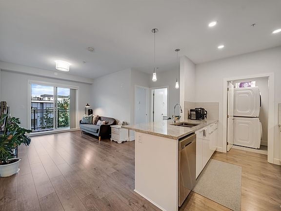 Welcome to The Wesley at Brydon Creek! This modern 2-bedroom, 2-bathroom home offers a bright, functional layout with bedrooms set on opposite sides for added privacy. The spacious living room flows seamlessly into the most sought-after U-shaped kitchen, featuring quartz countertops, stainless steel appliances, and a stylish eating bar perfect for 3 stools. Located in the heart of Langley City, this 4-year-old condo offers unmatched convenience — close to parks, Brydon Lagoon, trails, schools, and shopping. Enjoy easy access to public transit, with the upcoming SkyTrain extension just minutes away — a prime opportunity for future value growth. This is the perfect home for first-time buyers, investors, or anyone seeking urban comfort with a touch of nature. Open House Nov. 8&9/S&S 2-4PM