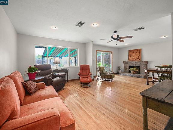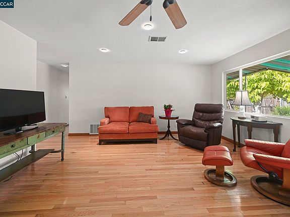 OPEN SUNDAY 1-4 Welcome home to the highly sought-after State Streets neighborhood in the Clayton Valley Highlands. This four-bedroom, two-bath home on a large corner lot is full of charm and potential. Step through the welcoming foyer and into the open living and dining rooms, where natural light, hardwood floors, recessed lighting, and a cozy wood-burning fireplace create the perfect setting for everything from homework nights to holiday celebrations. The eat-in kitchen features a garden window, new flooring, and a generous pantry, offering a great canvas to add your own style and updates. Four bedrooms with hardwood floors and ample closet space, along with two full baths, provide room for all plus flexibility for a home office, guest room, or workout space. Both bathrooms have been updated, including heated floors in the hall bath and a jetted tub in the primary suite. Sliding doors from both the family room and primary bedroom open to a large, flat backyard with endless possibilities for RV parking, an ADU, a swimming pool, or simply a great outdoor space to gather with friends and family. Energy-efficient features include dual-pane windows and central AC. All this moments from parks, walking trails, popular schools, shopping, and commute corridors. Welcome home!