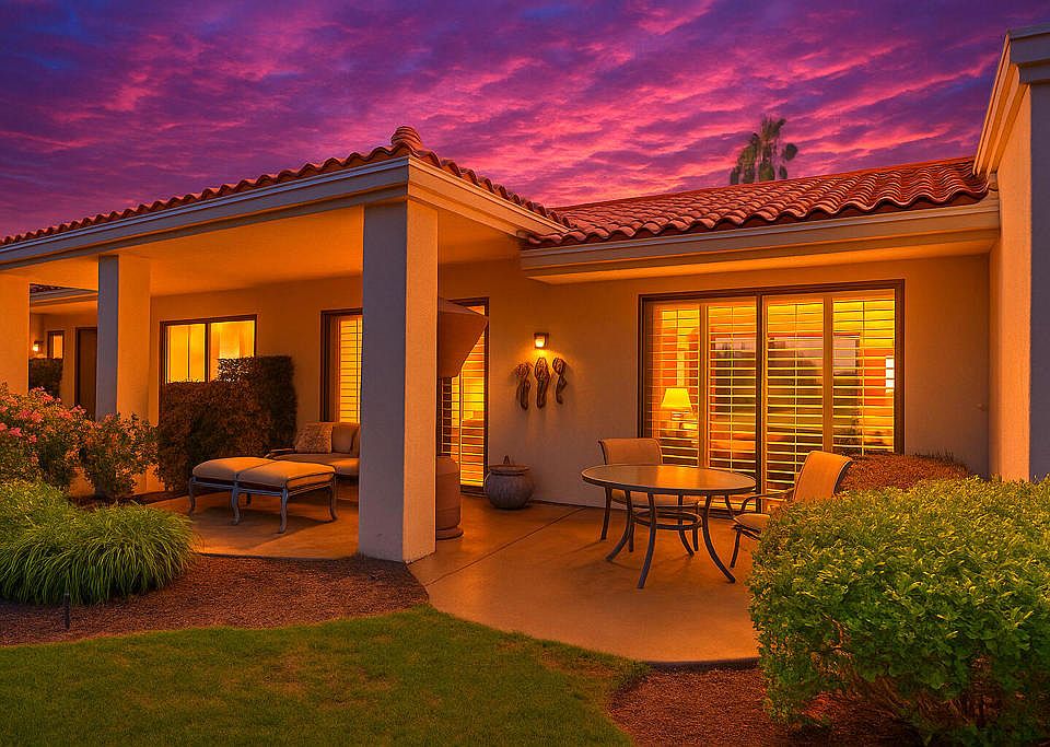 Discover this pristine and rarely available Champion 2X floor plan located on the 4th hole of the renowned TPC Stadium Course at PGA West. Offering 3 bedrooms and 3 baths across 1,673 sq ft, this light-filled single-level condo combines timeless design with tasteful modern upgrades.A private gated entry patio welcomes you inside, leading to an open-concept layout with soaring ceilings and abundant natural light. The interior features upgraded flooring, designer paint palette, custom shutters, recessed lighting, ceiling fans, enhanced baseboards, and stainless-steel appliances in the well-appointed kitchen. The spacious great room and dining area flow seamlessly to a private patio overlooking the lush fairway--ideal for enjoying morning coffee or evening sunsets.Additional highlights include a two-car garage, beautifully maintained landscaping, and close proximity to community pools and spas. Sold furnished per inventory, this move-in-ready home captures the essence of desert resort living at its finest.