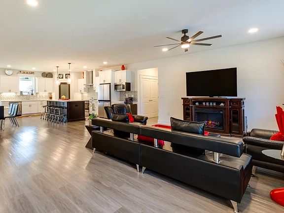 Walking inside you'll see an open living room, dinning room and kitchen with a big kitchen island to host a big family gathering.
