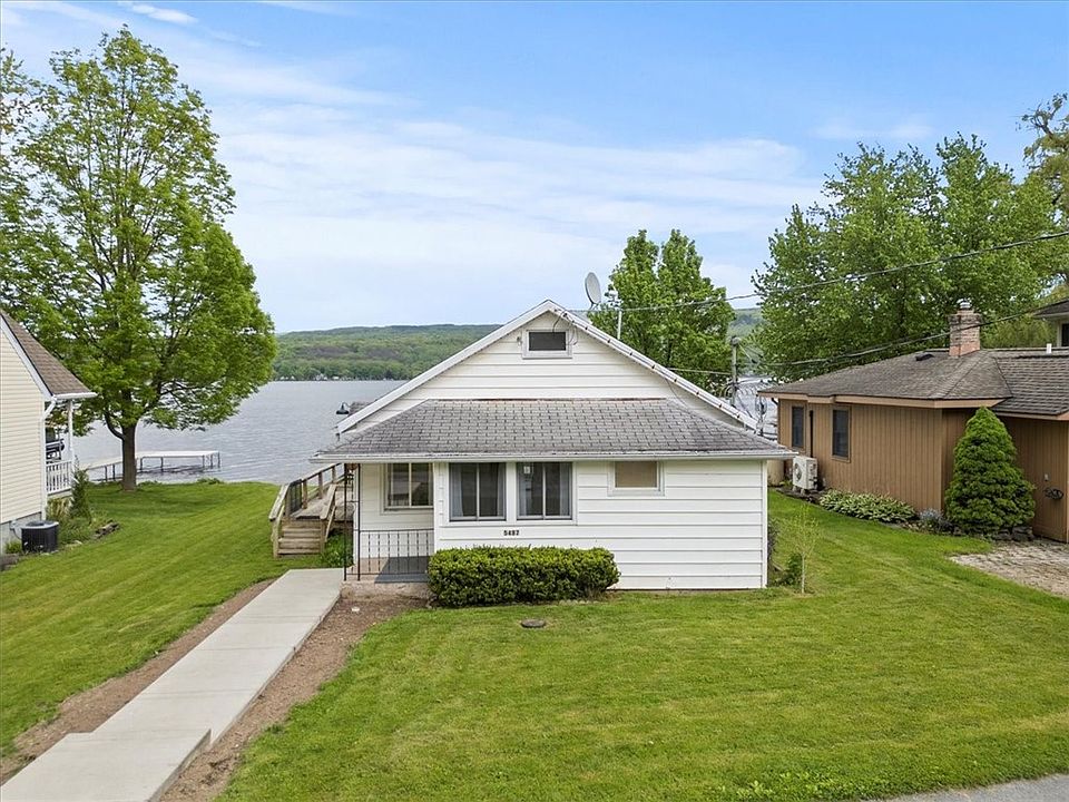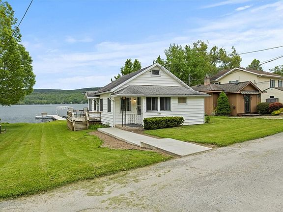 Be on the lake by summer! Join the sought-after Francis Shores neighborhood in this picture perfect waterfront year-round cottage on Honeoye Lake. 50 feet of level frontage that doesn't require flood insurance! Inside find new luxury vinyl plank flooring throughout, freshly painted rooms, and a brand new electric service. Constant lake views! Huge side deck off the living room. Heated porch with walls of windows and a brand new slider leading to new lakeside trex deck. Level lawn, firepit and 60 foot dock perfect for boats, swimming, and entertaining. Bunkhouse with electricity provides an additional sleeping/hobby area. Don't miss this one! All offers reviewed Monday 5/20 at 12pm. Open Houses: Saturday 5/18 3-4:30pm & Sunday 5/19 1-3pm.