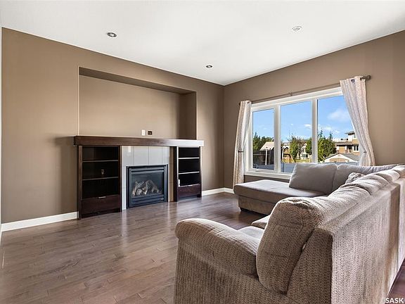 Welcome home to 5488 Aerial Crescent in our Harbour Landing neighbourhood in Regina SK! Buying a home is a lot like dating: Much like finding the perfect partner, the search for a home is about the connection and this Ripplinger Homes built (Build plans are available) 2-storey will captivate at first sight! Backing one of Harbour Landing’s walking trails, this 4-bedroom, 3-bathroom family home was designed with everyday living in mind. Hardwood & tile flooring on the main, stone countertops throughout, main floor laundry & custom built in closets on the main/second level there is a sense of refinement and practicality. The entry opens into an open concept main accentuated by 9ft ceilings & comfortable living room w/gas fireplace flanked by custom built in shelving. This kitchen is equipped w/undermount lighting, tiled backsplash, soft close cabinets & corner pantry. The dining room offers space for a family sized table, & direct access to your 4789 SQFT backyard w/gate access to the walking path! Completing the main floor are a ½ bathroom & main floor laundry, w/direct access to the garage! Upstairs you will fall in love with a generously sized primary bedroom & charming ensuite w/dual sinks (dual plugs too) vanity sporting a middle storage tower, soft close drawers, plus shower. Walk through into your L shaped WIC featuring a custom shelving! The two secondary bedrooms are a good size each w/their own closets w/built in shelving! Finishing the 2nd floor is a full bathroom w/another good-sized vanity. Downstairs offers a finished bedroom (window is not egress) w/a closet (plus a fun Harry Potter nook)! The rest of the basement is open for development & has R/I plumbing for an additional bathroom. This 18x24.8 ft (interior) garage includes a centre pit, 12-foot clearance, 220V plug, and five-panel garage door. There’s lots to love about this home including its walkability to Grasslands shopping area, parks, & schools. This could be the one that steals your heart!