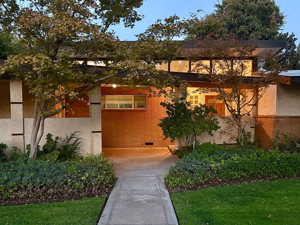 Vegetable and herb gardenMid-century modern appealMature treesEnsuite bathroomMulti-use backyard with poolFreshly painted interiorFlowering bushes