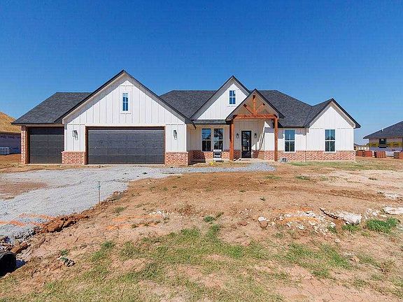 Stunning, sleek modern approximately 2000 sf new construction home on 0.5 acre. 4 bedrooms, 2 bathrooms, open floor plan, 3 car garage which includes quartz countertops throughout, custom built cabinetry, gas fireplace, Elgin schools, and more. Call Shelly Speas for more information 580 591 6691