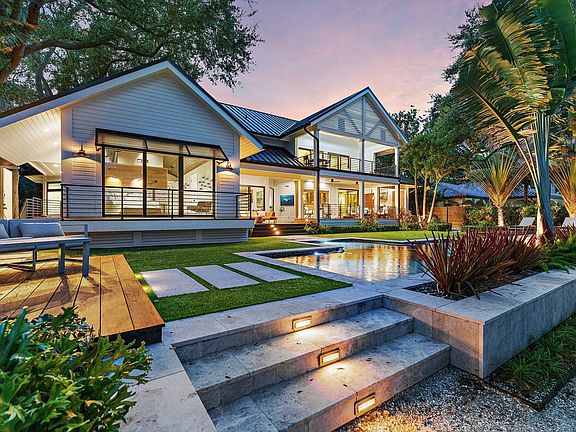 Welcome to this exquisite single-family waterfront estate located on the highly desirable Pennock Point. Nestled behind the privacy of gated entry, this residence has been completely renovated to showcase fine finishes and meticulous attention to detail throughout, offering a perfect blend of sophistication and comfort. Expansive windows frame breathtaking wide-open water views with over 100' of pristine frontage, while a new dock with a 16,000 lb boat lift and jet ski dock invites endless adventures on the water. The professionally landscaped grounds are adorned with magnificent mature trees, creating a serene and picturesque setting that embodies the essence of luxury living.